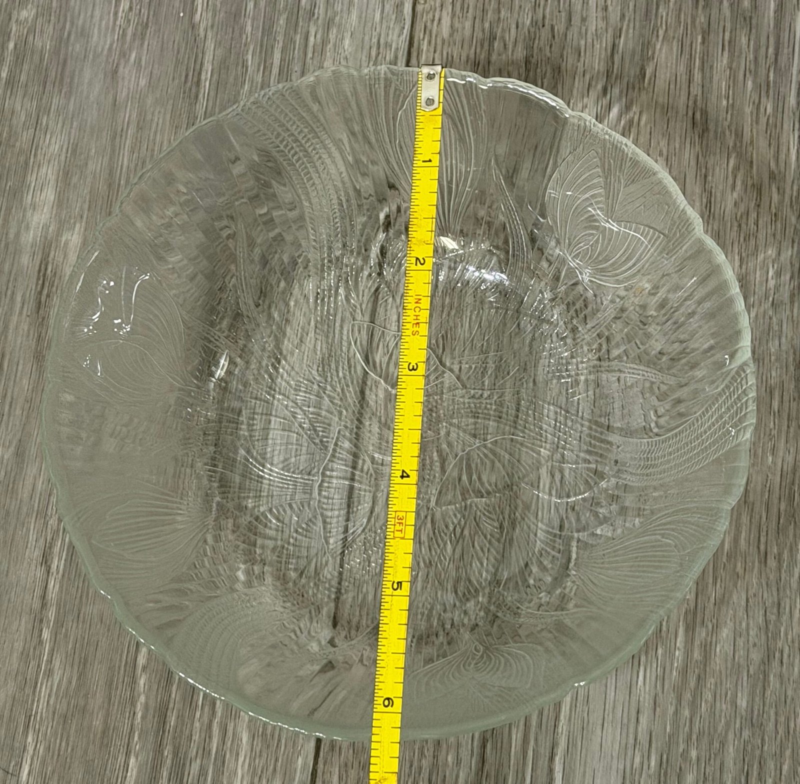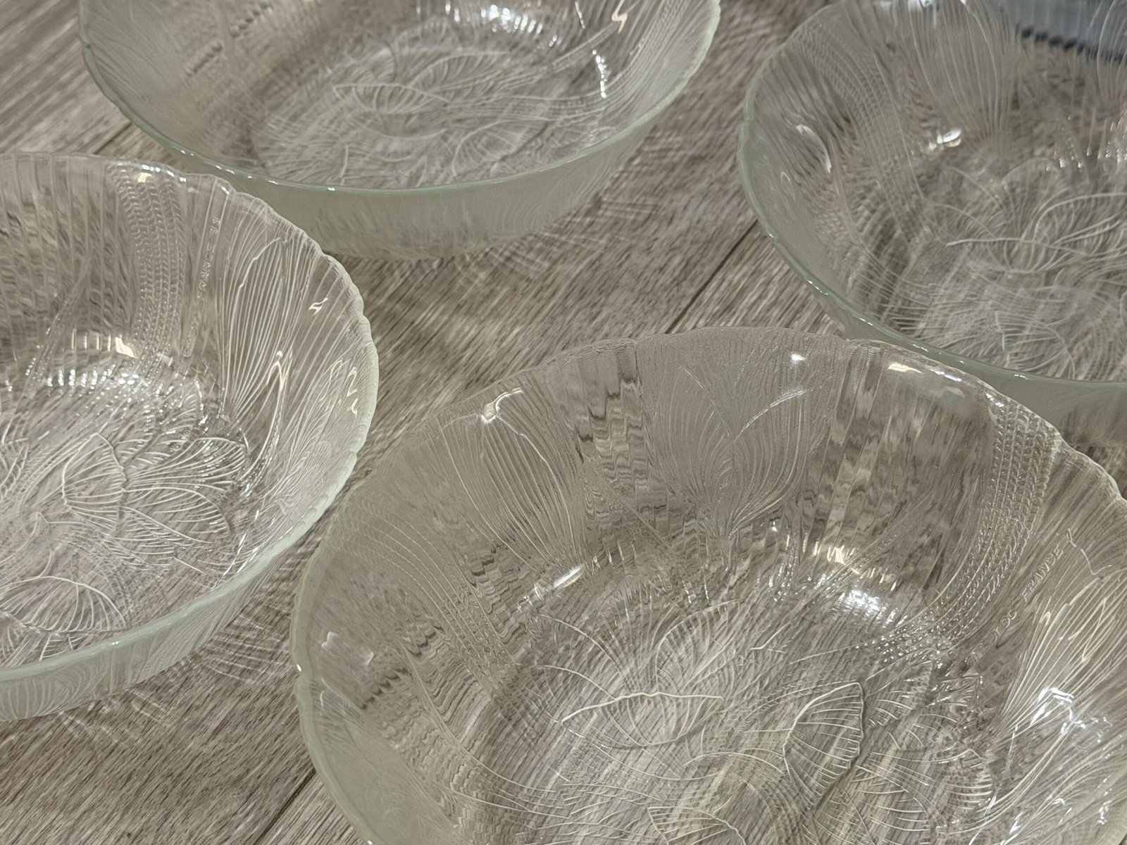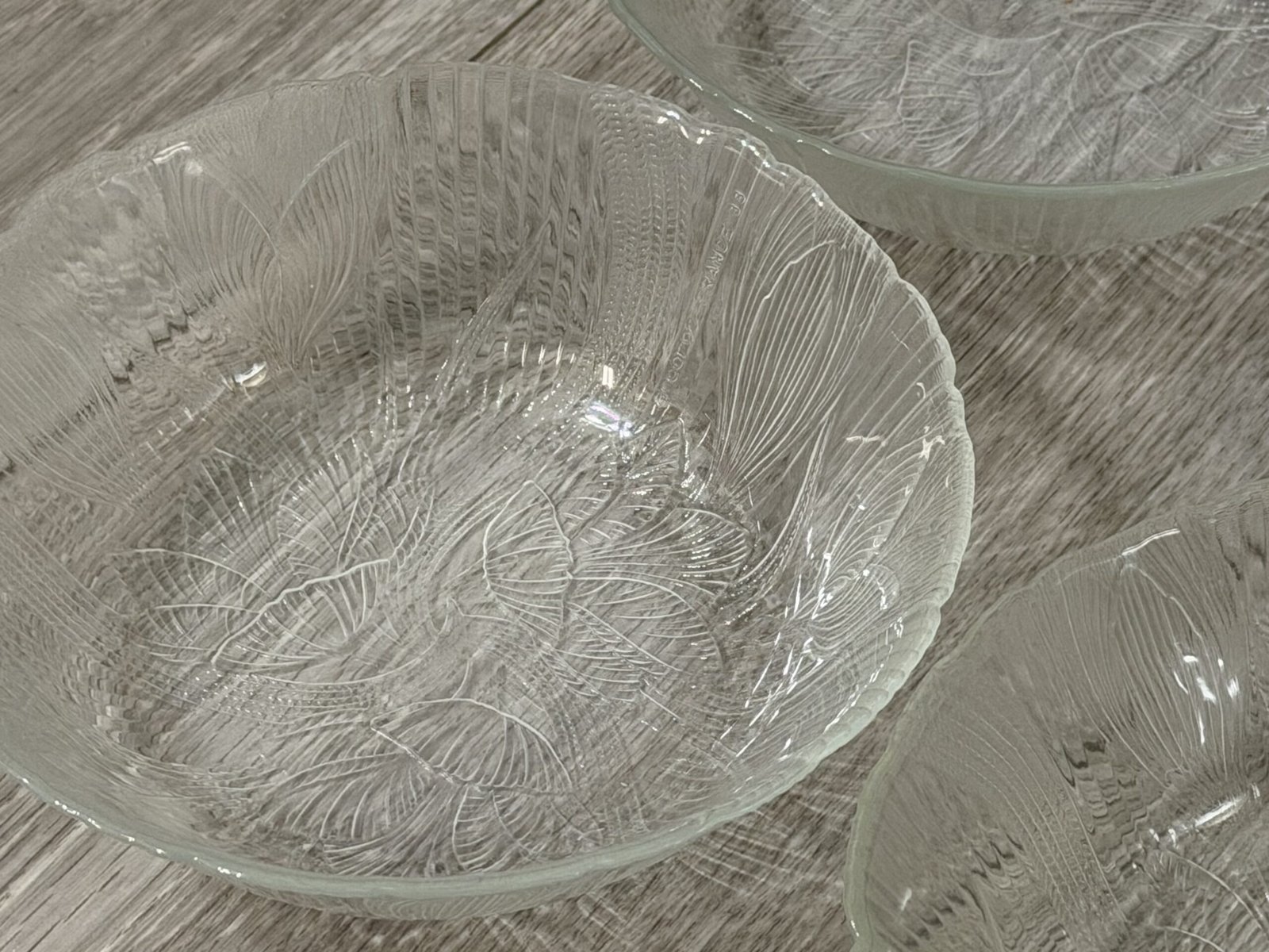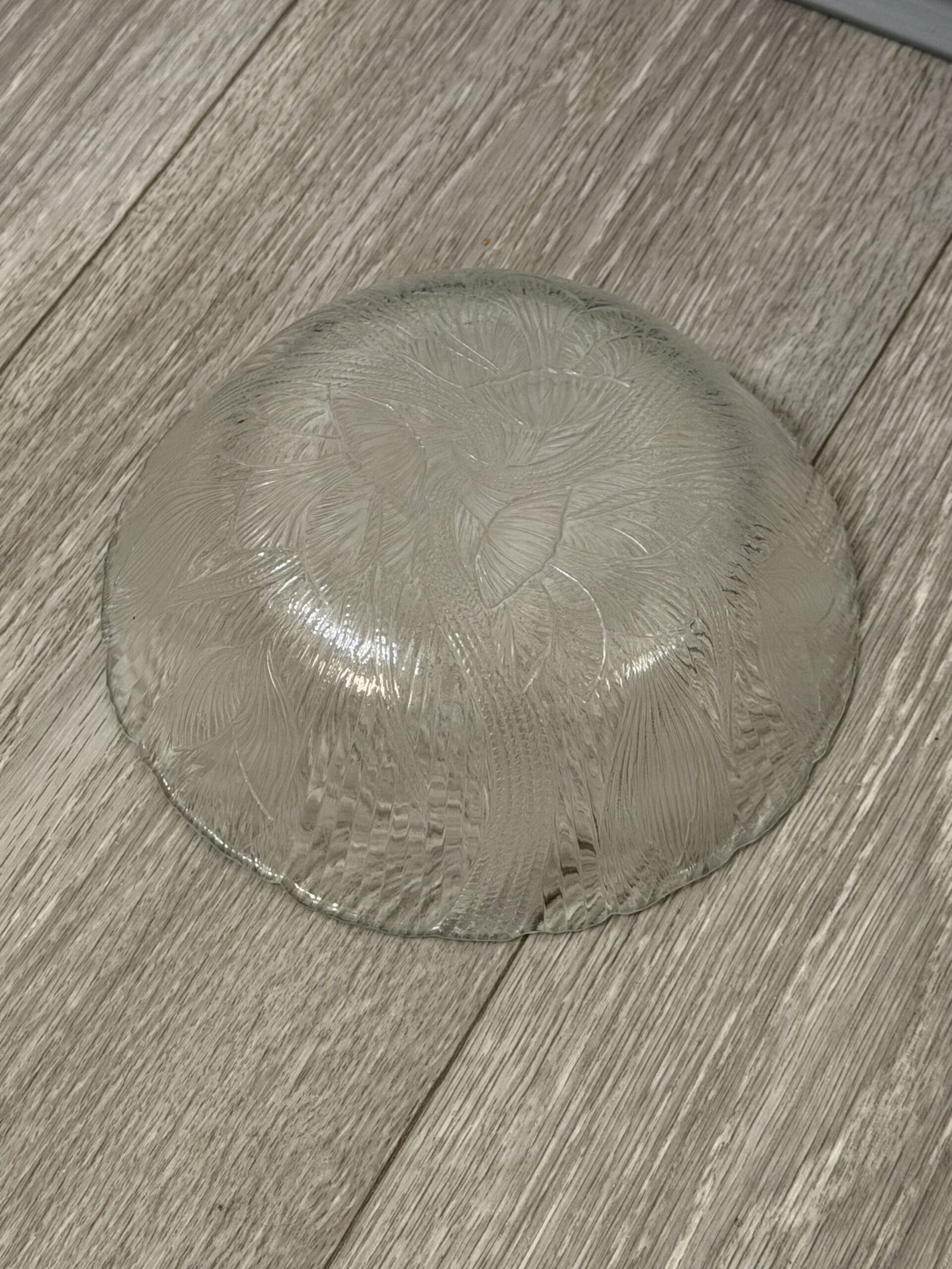 These vintage clear glass salad bowls feature the classic Crocus (Canterbury) pattern with raised floral motifs and fine vertical ribbing that beautifully catch and reflect the light. The set includes four matching bowls, perfect for serving salads, fruit, desserts, or for adding a touch of nostalgic charm to your cottagecore or retro-inspired table. Each bowl has a softly scalloped rim and pressed glass texture that feels both delicate and durable, making them ideal for everyday use or special gatherings in your Just Bee Mee collection. These bowels have a diameter of about 6.25”. See images for details.